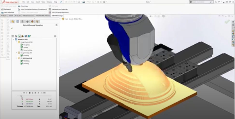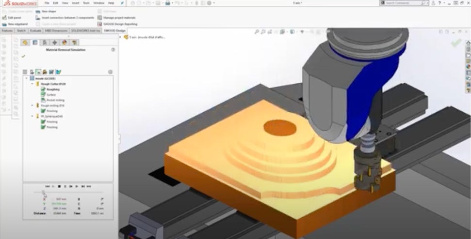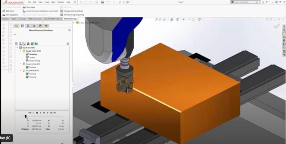 A long time ago, I was tasked with building a material removal simulation product for a company that had a sophisticated graphical programming and simulation solution for manufacturing robots. Basically, the idea was to be able to put a simulated tool on the end of a simulated robot arm (or machine tool), put a virtual block of material in a simulated vice, and watch the block change into a finished part as the tool runs G-code (a CNC machining program) over it. Really cool, cutting edge stuff, especially back in 1990.